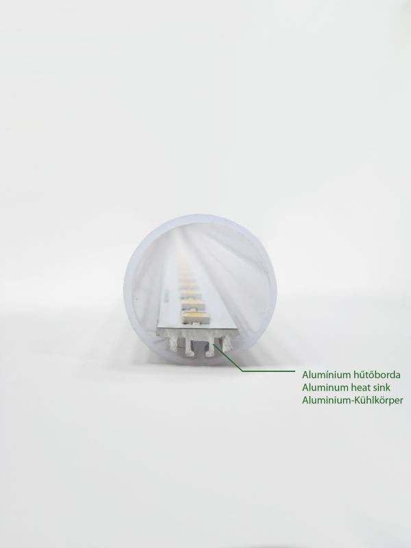 Due to the special internal design the heatsink is located inside at the bottom of the tube, thus increasing the beam angle.